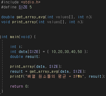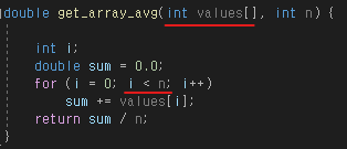 - double get_array_avg(int values[], int n) 배열 요소의 평균값 계산