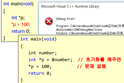 - *포인터는 사용 전에 반드시 초기화를 해야한다*