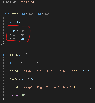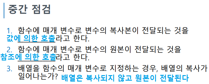 · 함수 외부에서 선언된 변수의 값을 변경할 땐 참조에 의한 호출 사용