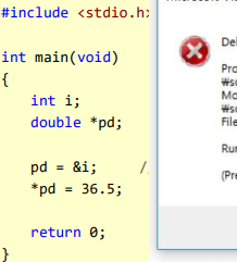 int i <> double *pd double형 포인터에 int형 변수의 주소를 대입 ㅡ> 오류