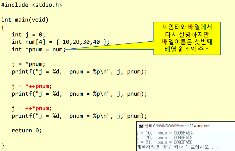 결과값 ㅡ 포인터와 배열