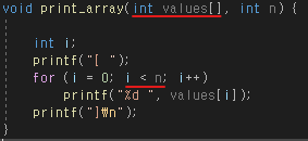 - void print_array(int values[], int n) 배열 요소들 출력