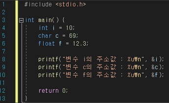 - 변수 i의 주소 = &i